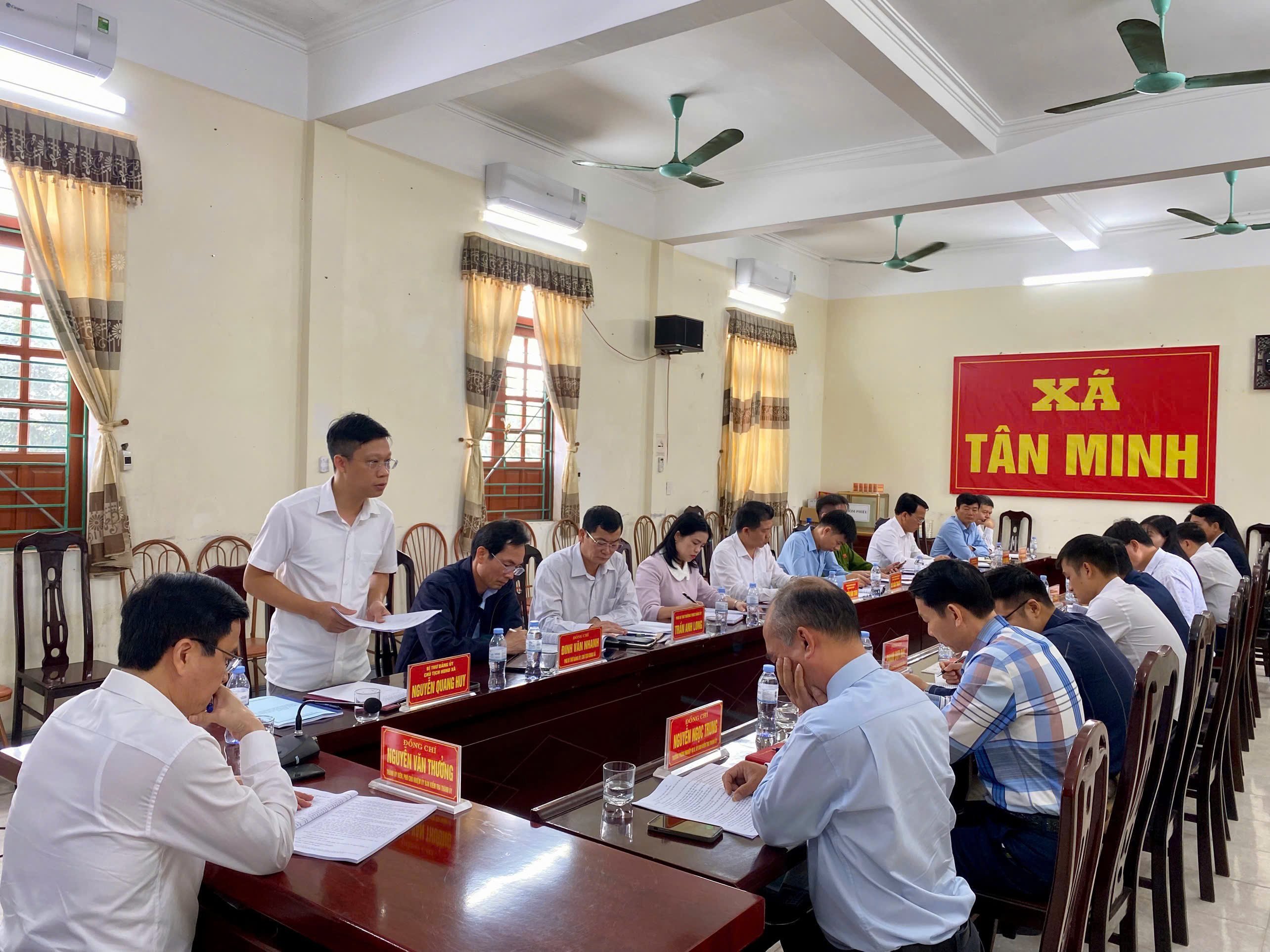 Đồng chí Nguyễn Văn Thưởng - Ủy viên Thành ủy, Phó Chủ nhiệm Ủy ban kiểm tra Thành ủy chủ trì cuộc giám sát. Cùng dự có đại diện các cơ quan đơn vị liên quan. Đại biểu xã Tân Minh có đồng chí Nguyễn Quang Huy – Bí thư Đảng ủy, Chủ tịch HĐND xã, các đồng chí Thường trực Đảng ủy, Ủy viên BTV Đảng ủy, lãnh đạo các cơ quan liên quan.