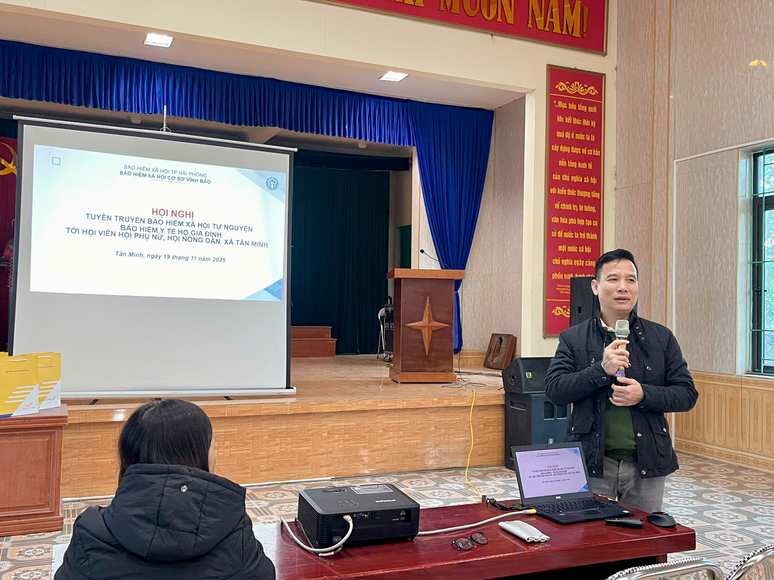 Chiều ngày 19/11/2025, tại Trụ sở Ủy ban MTTQ xã Tân Minh, Bảo hiểm xã hội cơ sở Vĩnh Bảo phối hợp với Hội Nông dân, Hội Liên hiệp phụ nữ xã Tân Minh tổ chức Hội nghị tuyên truyền, phổ biến chính sách pháp luật bảo hiểm xã hội, bảo hiểm y tế tới hội viên Hội phụ nữ, Hội Nông dân xã.