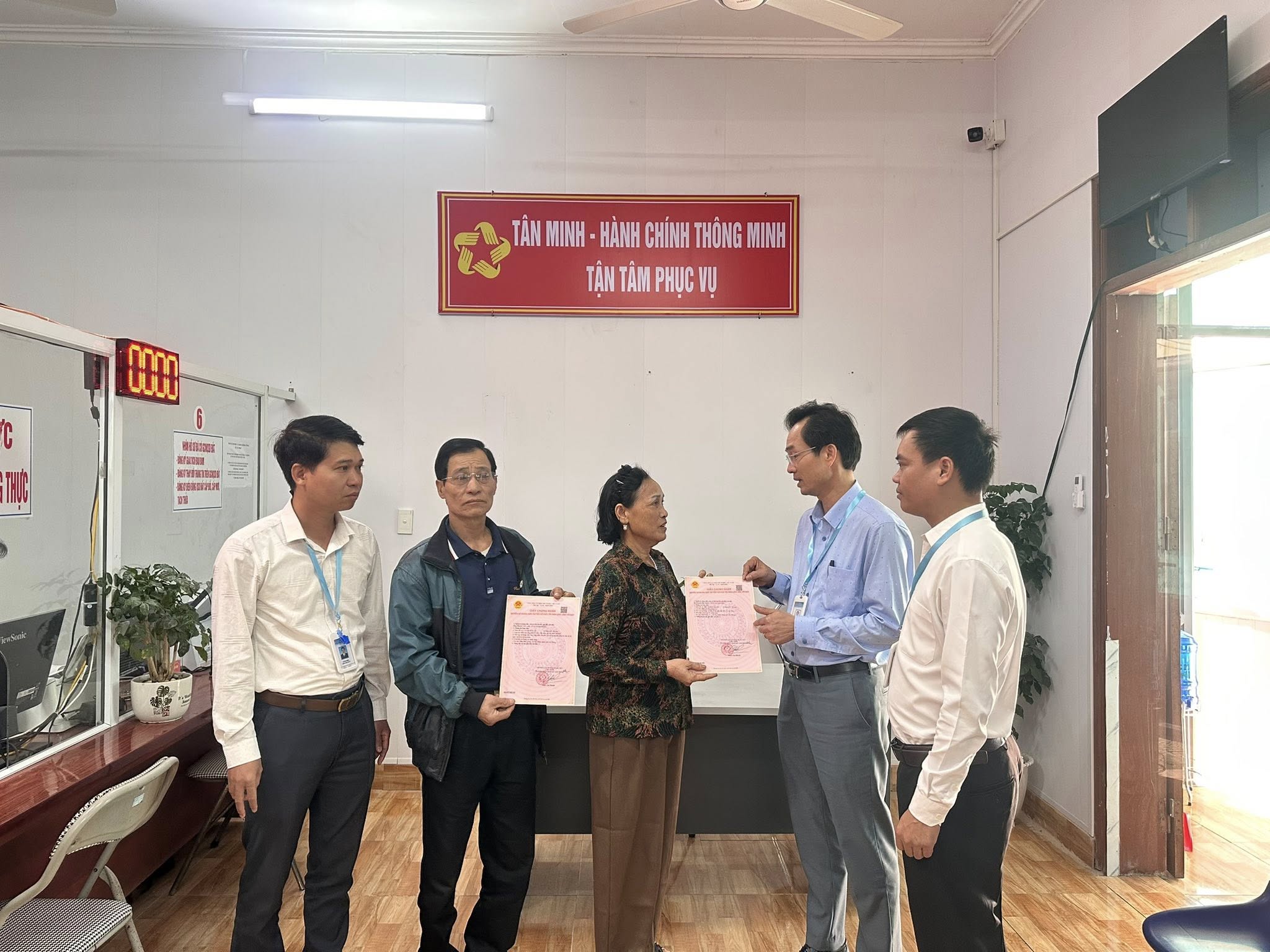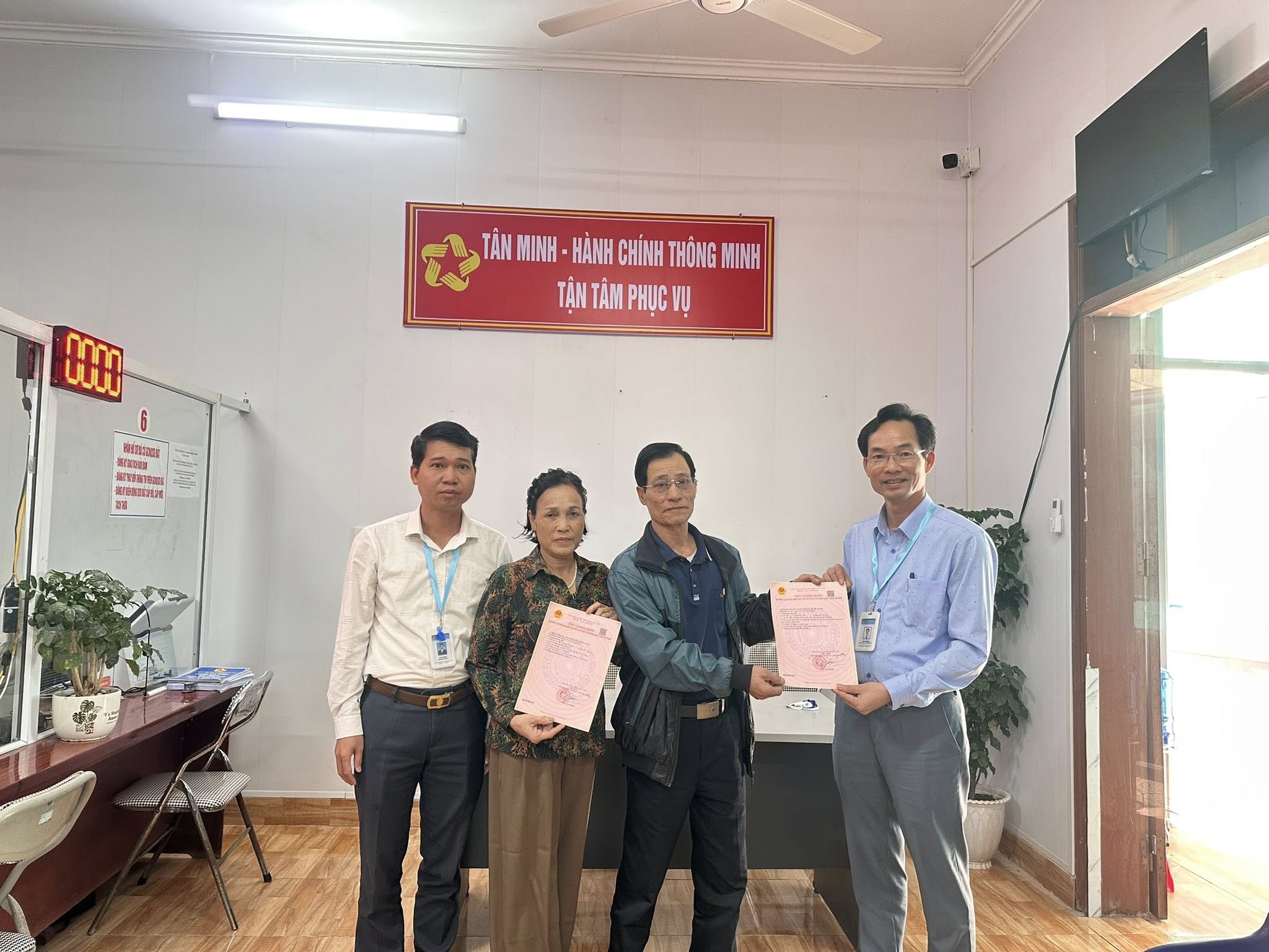 Trong thời gian qua, UBND xã Tân Minh đã chỉ đạo các bộ phận chuyên môn đẩy mạnh cải cách thủ tục hành chính, tăng cường hướng dẫn người dân hoàn thiện hồ sơ cấp Giấy chứng nhận lần đầu; đồng thời chủ động phối hợp chặt chẽ với các cơ quan chuyên môn nhằm tháo gỡ vướng mắc, đẩy nhanh tiến độ giải quyết hồ sơ, bảo đảm tính công khai, minh bạch và đúng quy định pháp luật.