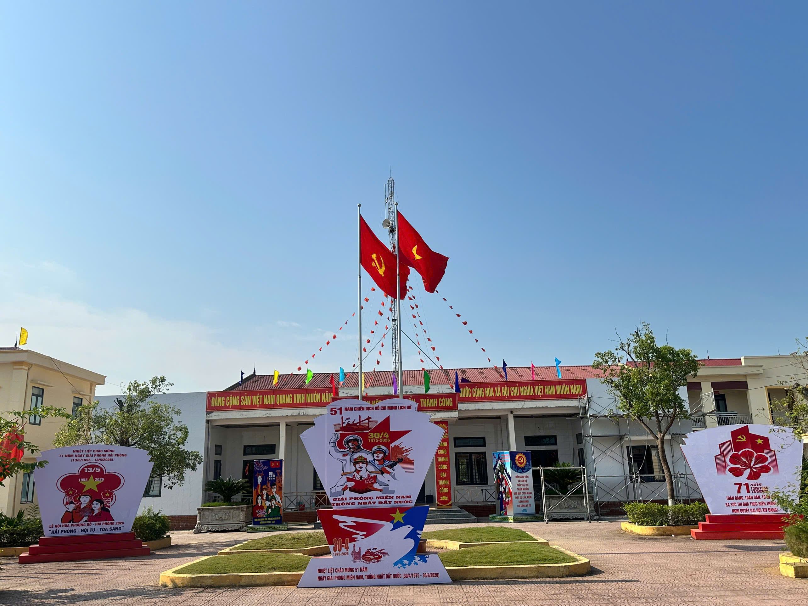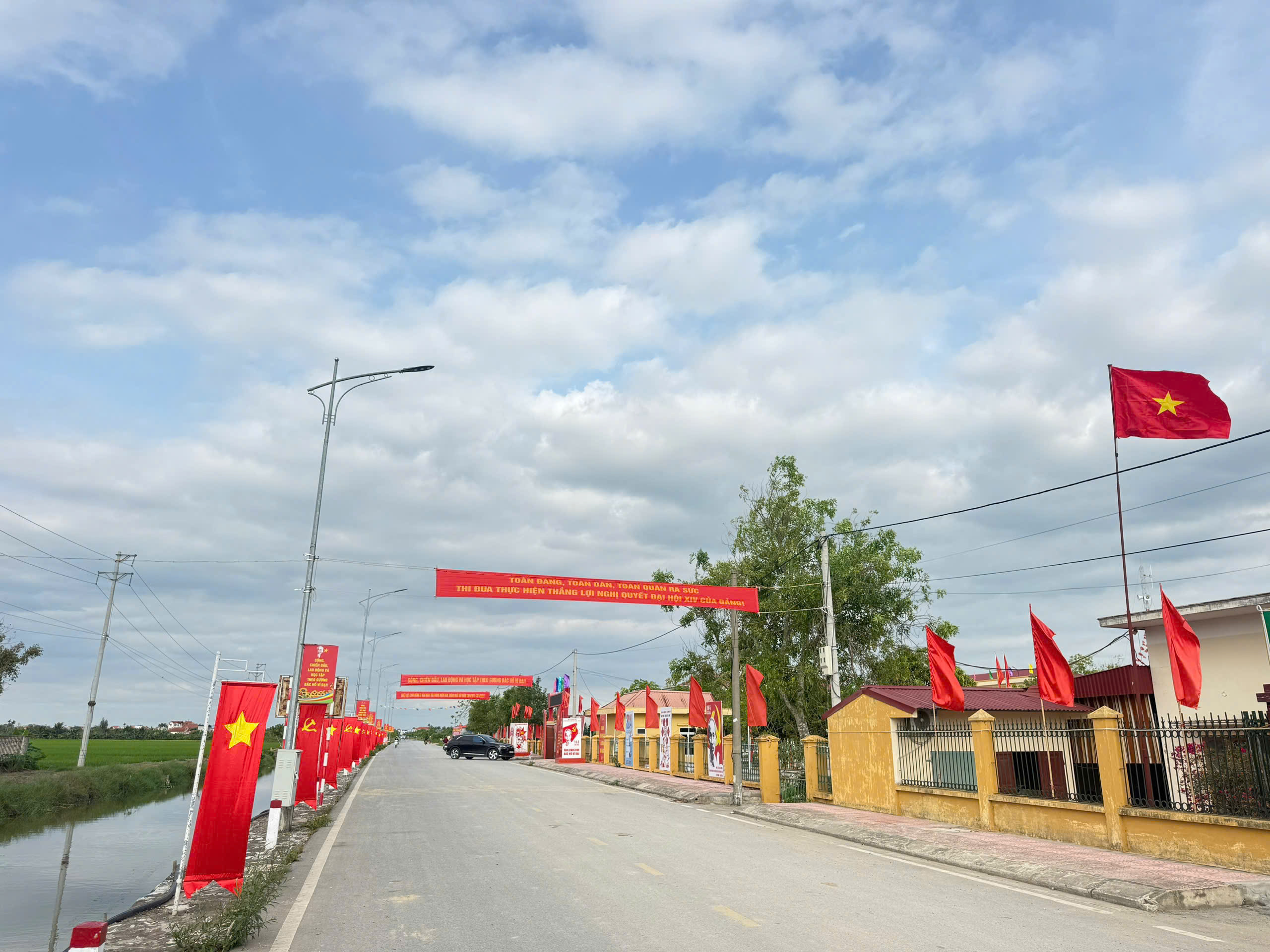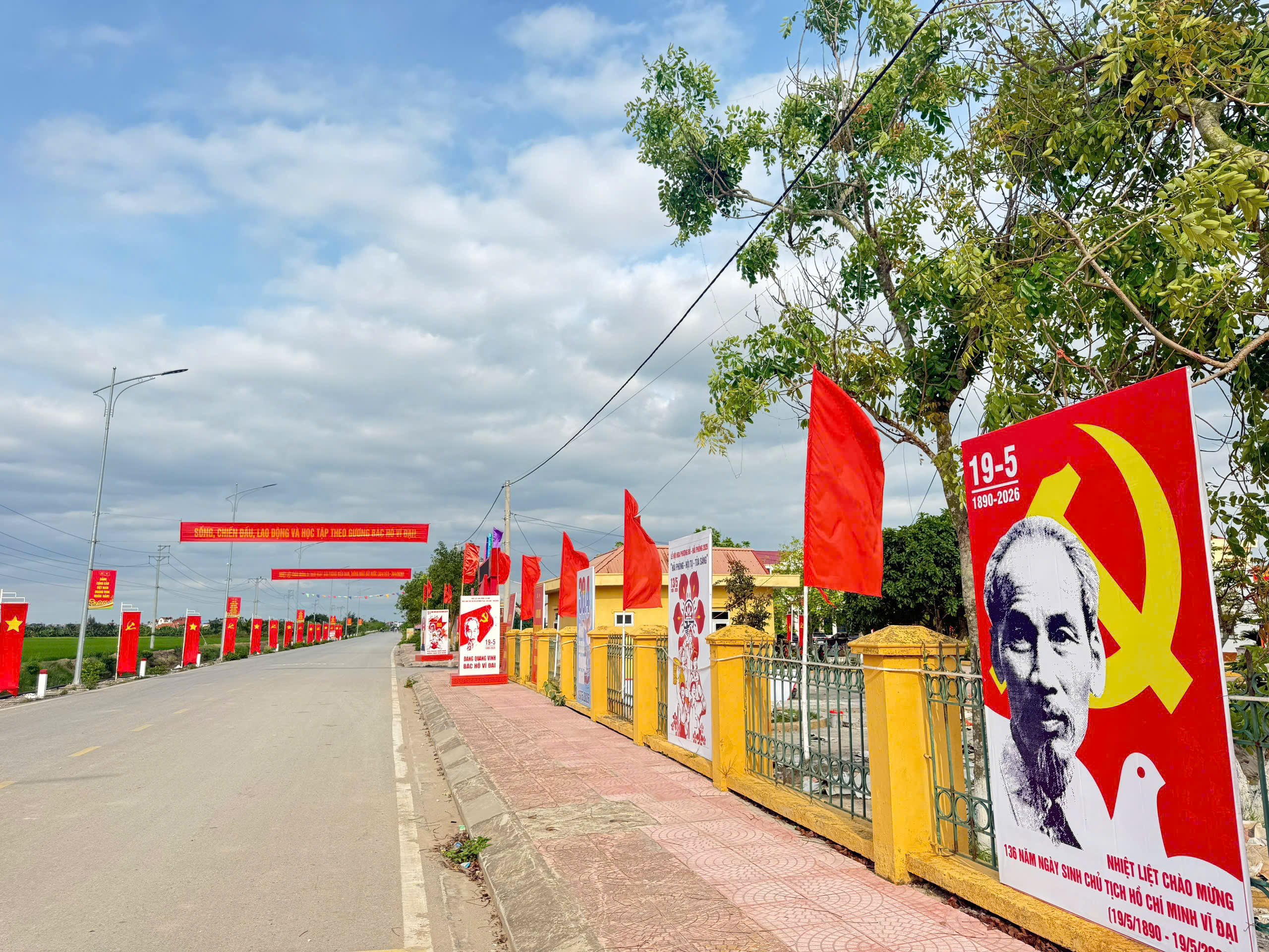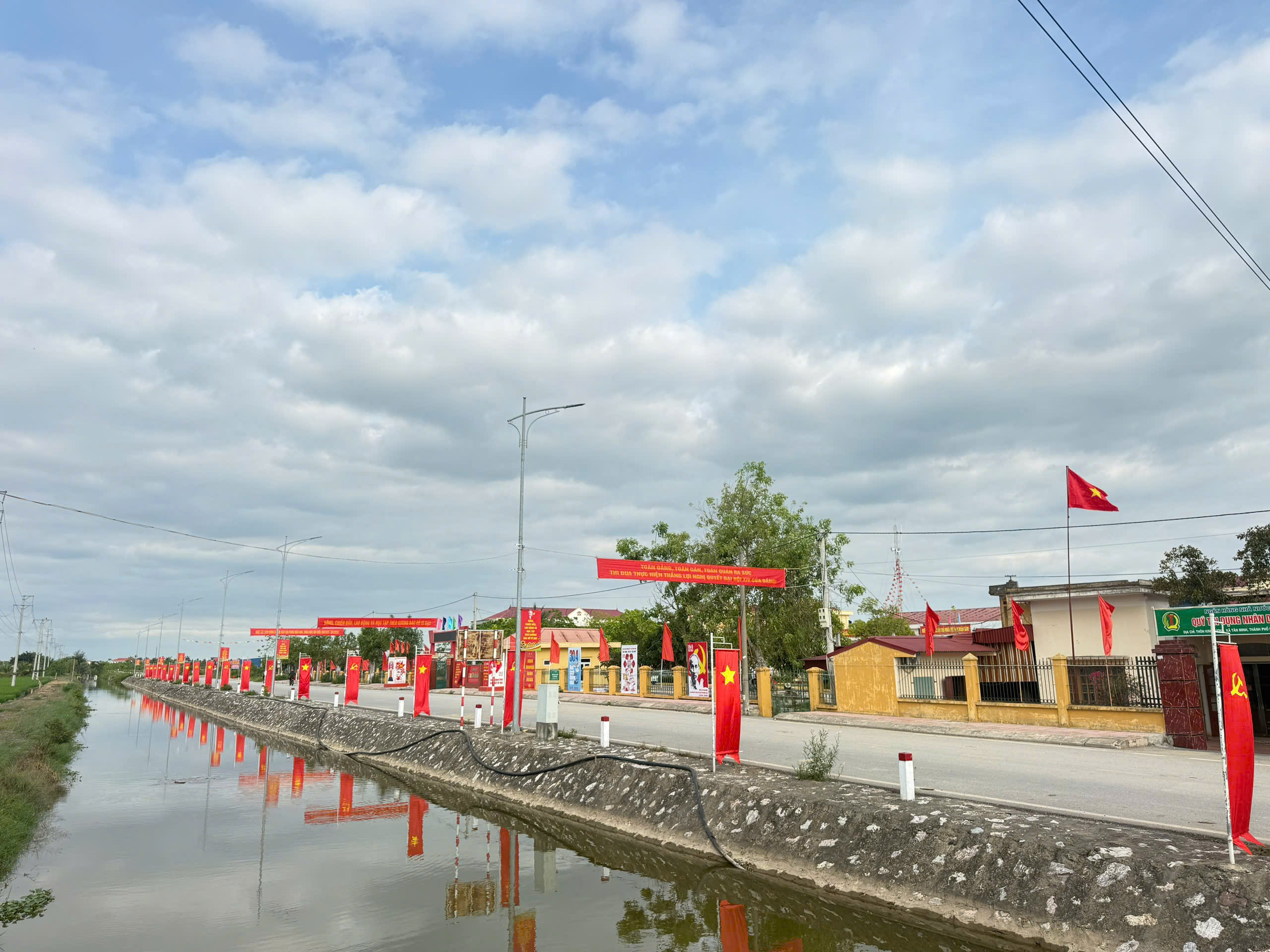 Toàn xã khoác lên mình diện mạo mới với không gian trang trí rực rỡ, trang nghiêm. Tại các khu vực trung tâm như trụ sở Đảng ủy, UBND xã, sân vận động trung tâm, khu vực ngã ba cầu Đầm, công tác trang trí pano, tranh cổ động được triển khai đồng bộ, nổi bật với nhiều hình ảnh, khẩu hiệu giàu ý nghĩa, góp phần tuyên truyền sâu rộng về truyền thống cách mạng, khơi dậy niềm tự hào dân tộc trong các tầng lớp Nhân dân.