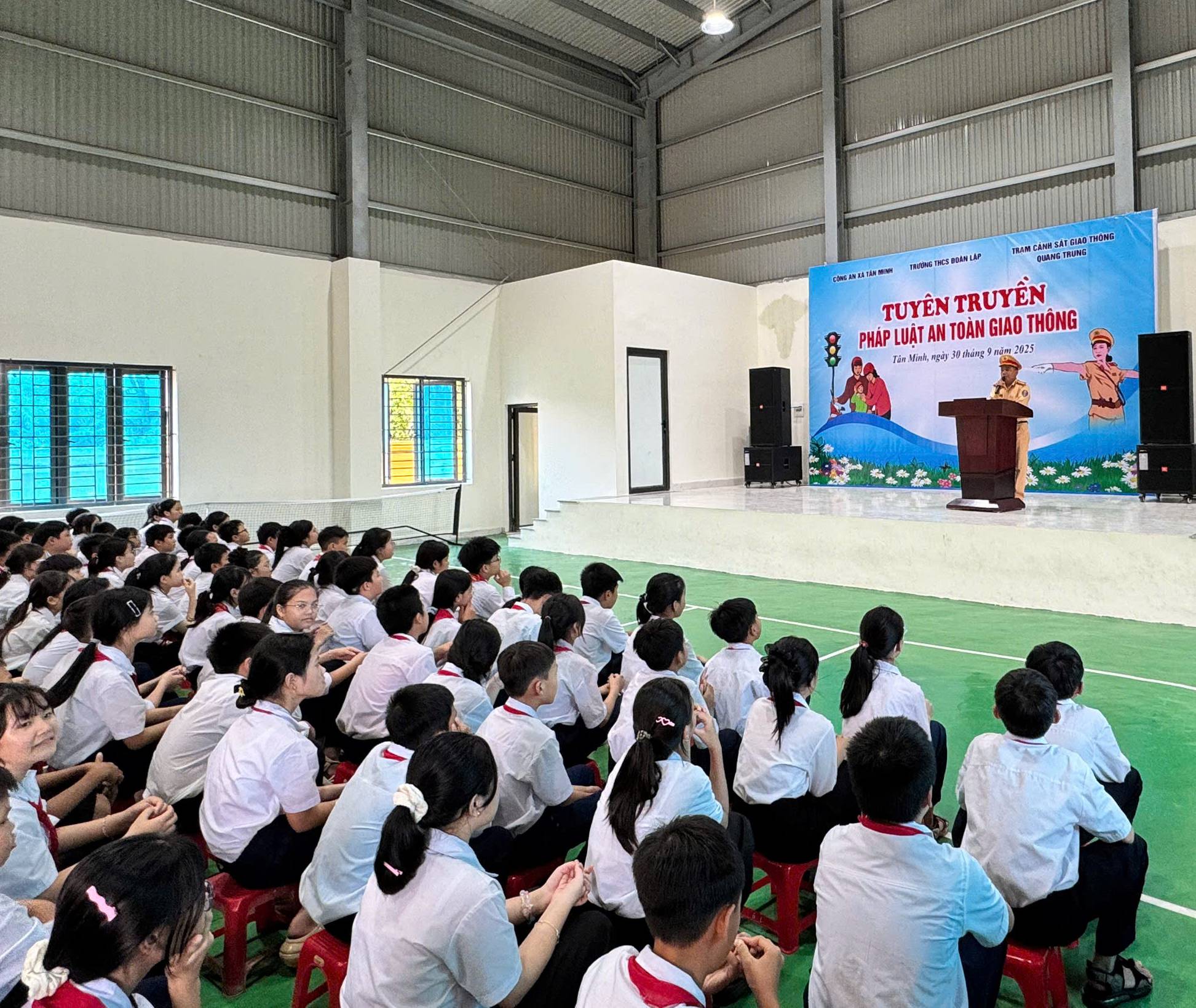 Sáng 30/9/2025, Công an xã Tân Minh kết hợp cùng phòng PC08 - Trạm CSGT Quang Trung tổ chức phổ biến tuyên truyền kiến thức pháp luật về trật tự ATGT tại trường THCS Kiến Thiết và trường THCS Đoàn Lập.