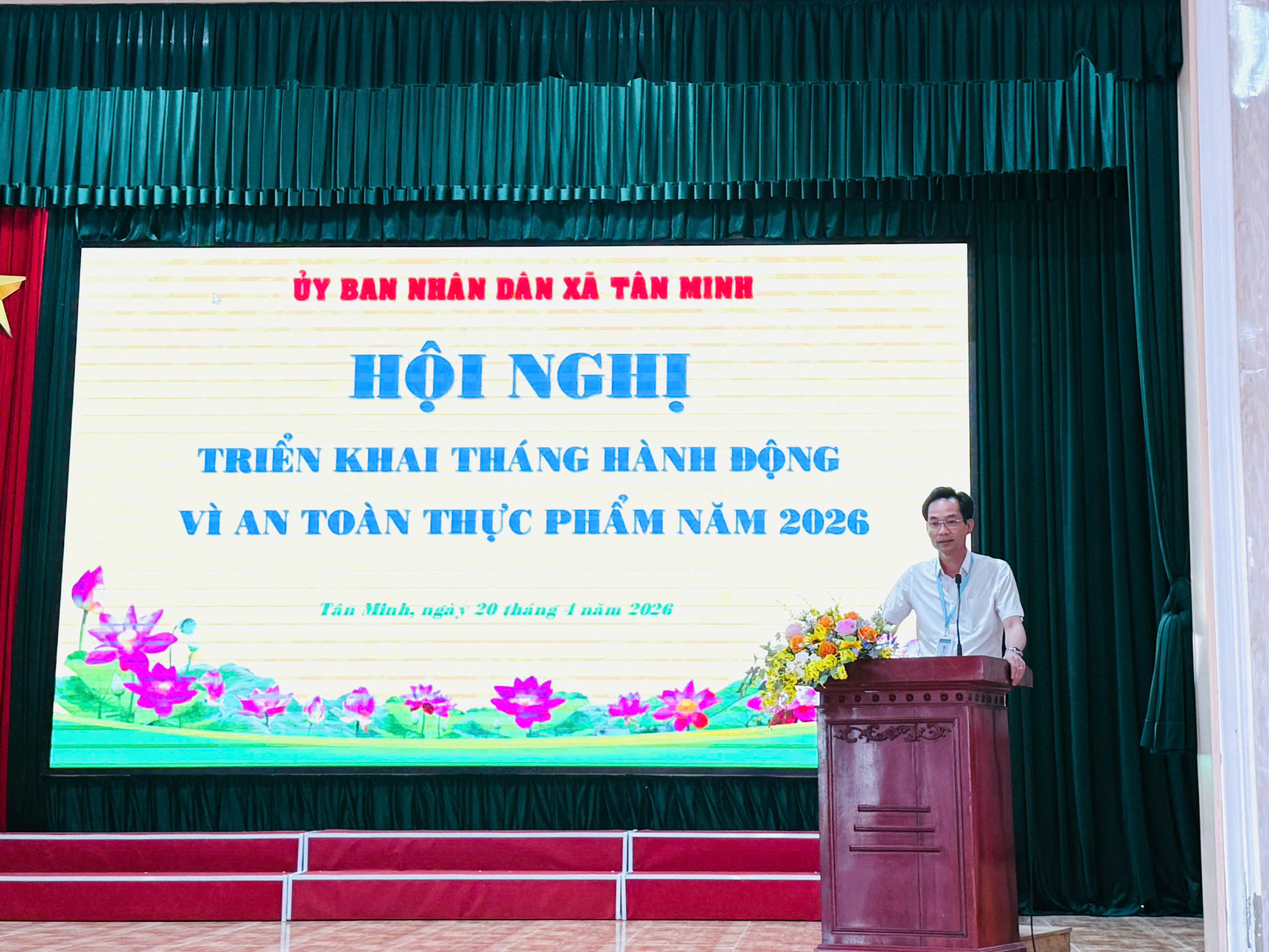 Chiều ngày 20/4, UBND xã Tân Minh tổ chức hội nghị triển khai tháng hành động vì an toàn thực phẩm năm 2026. Đồng chí Đinh Văn Nhanh - Chủ tịch UBND xã chủ trì hội nghị. Cùng dự có đồng chí Nguyễn Thị Bích Huyền - Uỷ viên BTV Đảng uỷ, Phó Chủ tịch Thường trực UBND xã, đồng chí Vũ Ngọc Ngưng - Uỷ viên BTV Đảng uỷ, Chủ tịch UB MTTQ Việt Nam xã, đồng chí Nguyễn Quyết Thắng - Phó Chủ tịch UBND xã.