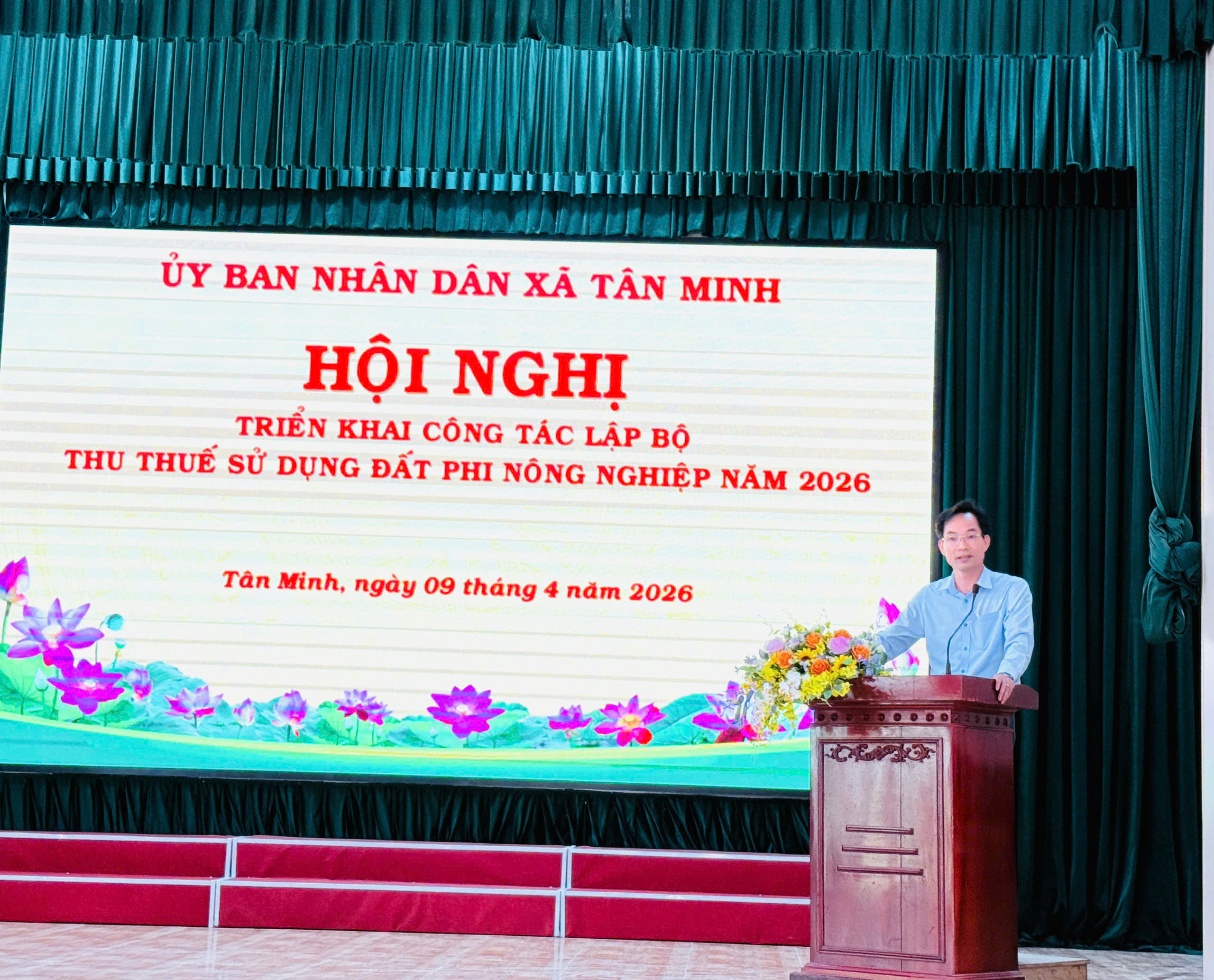 Sáng ngày 9/4, UBND xã Tân Minh tổ chức hội nghị triển khai một số nhiệm vụ trọng tâm trên địa bàn năm 2026. Dự và chỉ đạo hội nghị có đồng chí Đinh Văn Nhanh – Phó Bí thư Đảng ủy, Chủ tịch UBND xã; cùng tham dự có đồng chí Nguyễn Quyết Thắng - Phó Chủ tịch UBNd xã, đại diện các ban, ngành, đoàn thể, cán bộ chuyên môn và Bí thư chi bộ, trưởng các thôn trên địa bàn.
