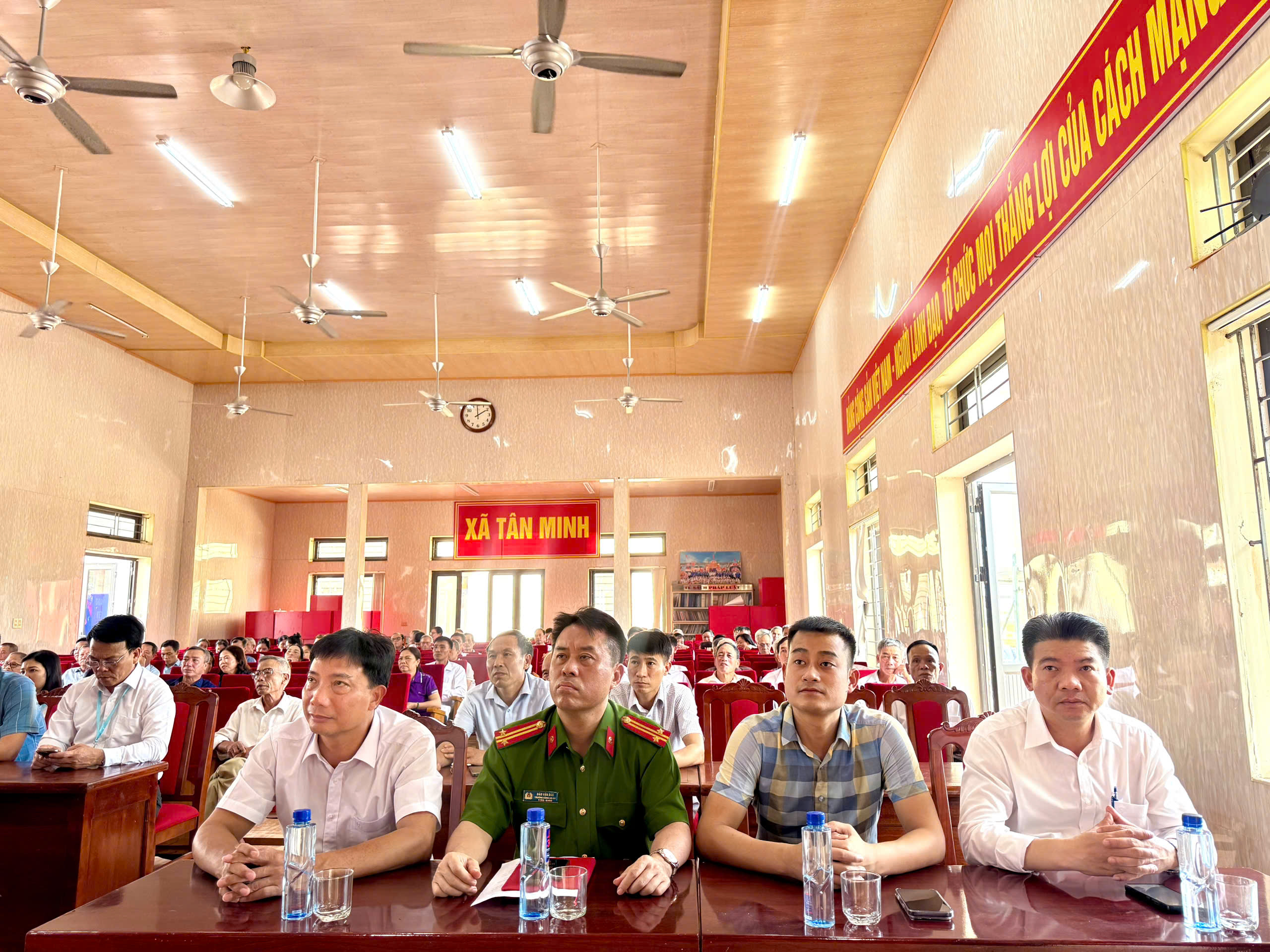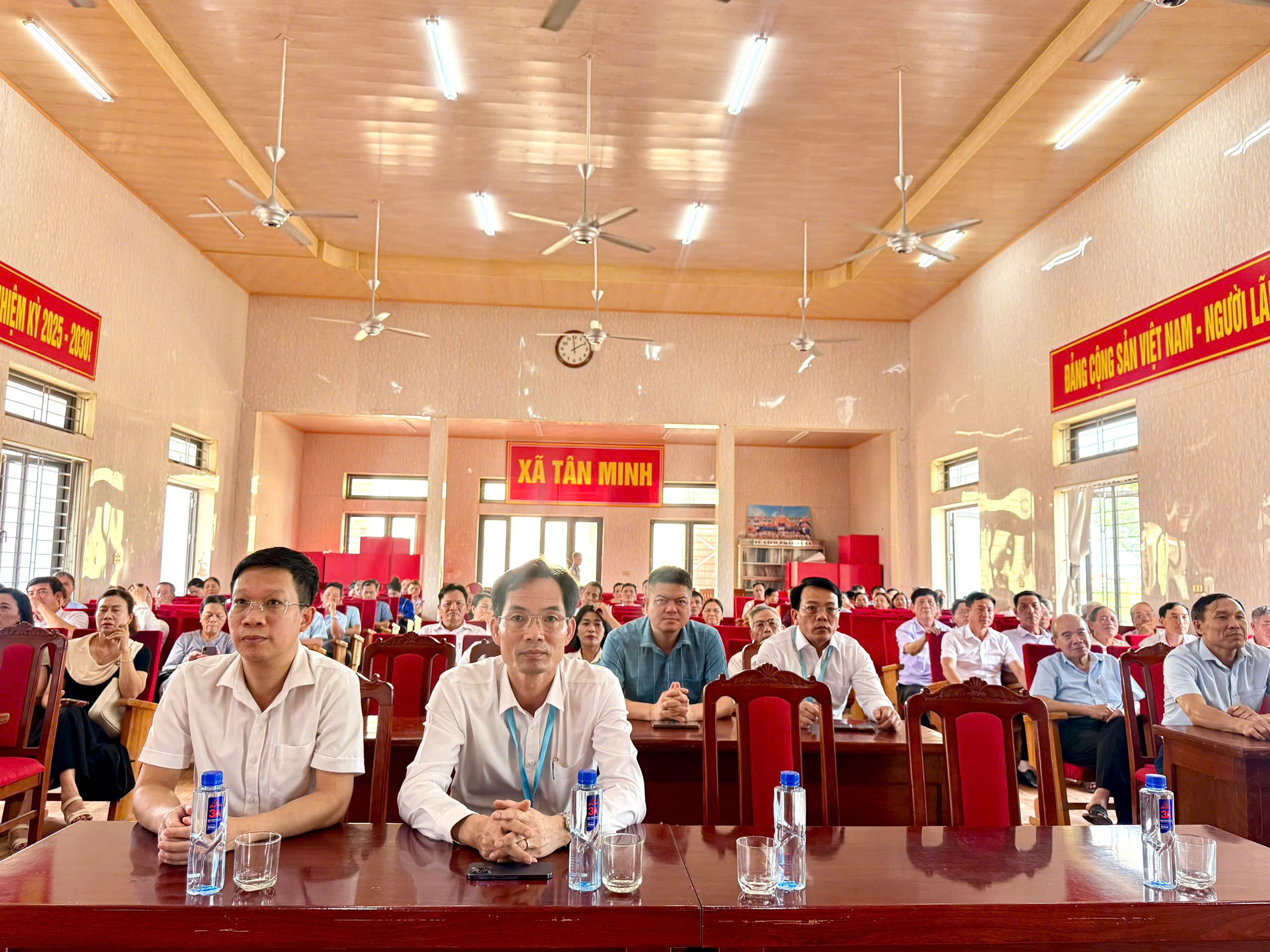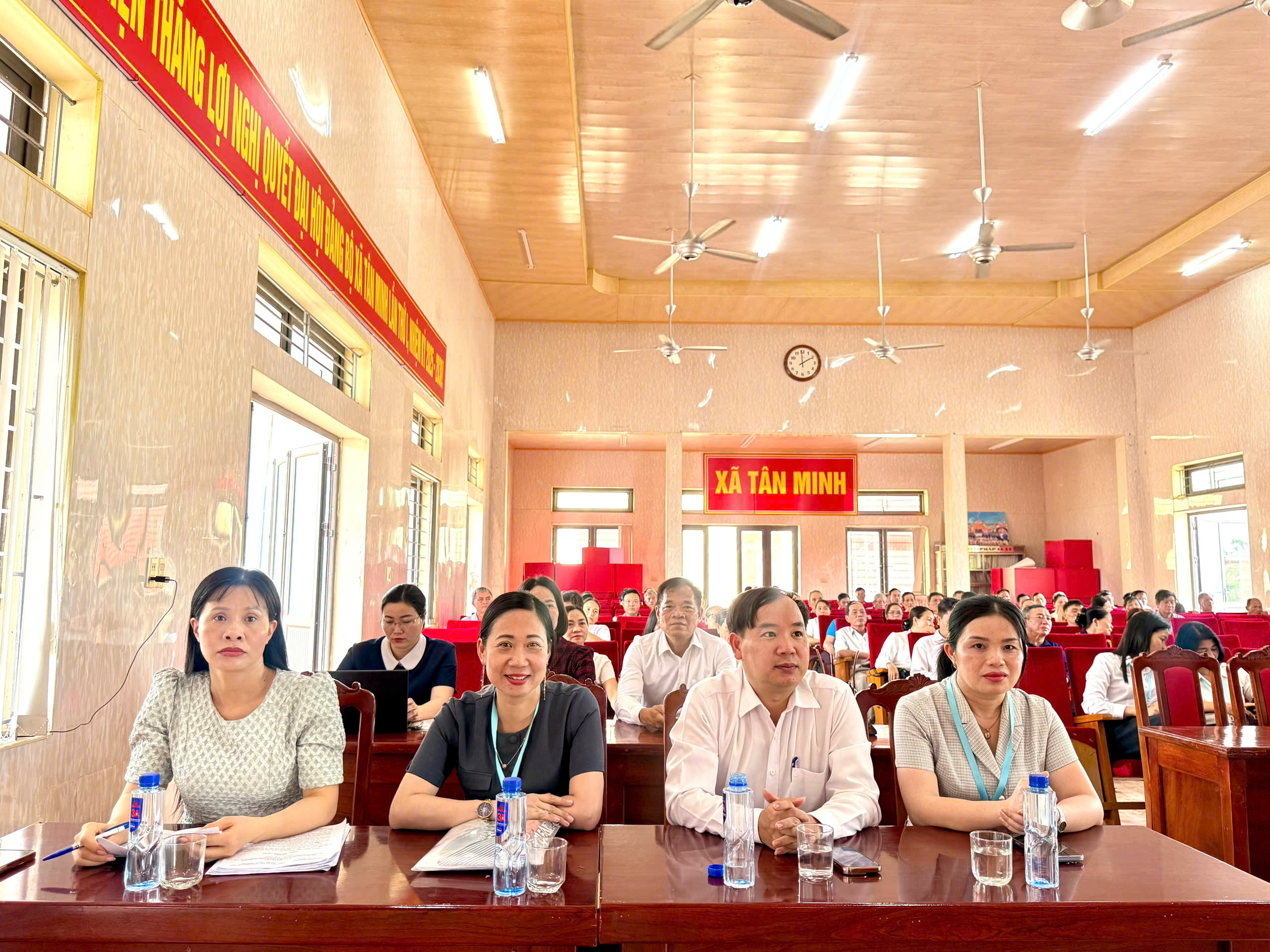 Tại điểm cầu xã Tân Minh, tham dự hội nghị có đồng chí Nguyễn Quang Huy – Bí thư Đảng ủy, Chủ tịch HĐND xã; đồng chí Đinh Văn Nhanh – Phó Bí thư Đảng ủy, Chủ tịch UBND xã; cùng các đồng chí Ủy viên Ban Thường vụ Đảng ủy, lãnh đạo HĐND, UBND, Ủy ban MTTQ Việt Nam xã; đại diện các ban, ngành, đơn vị, trường học và các thôn trên địa bàn.